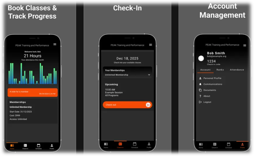 Manage memberships, payments, and session bookings in the PEAK Training and Performance app.